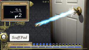Using the tracking pad or mouse, the player creates friction and accumulates electrons. (This can be compared to walking across a carpet on a dry day!) When the virtual finger is close enough to the doorknob, a spark is created. The interactive simulation shows electrons building up via friction in real time. The game includes 4 trials, the qnet of the doorknob changes each time. The interactive display of Coulomb’s Law as a relation (without k) dynamically changes on screen.